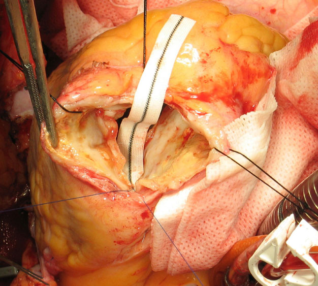 enlarged left ventricle and repair of the resultant mitral regurgitation with a valve ring.